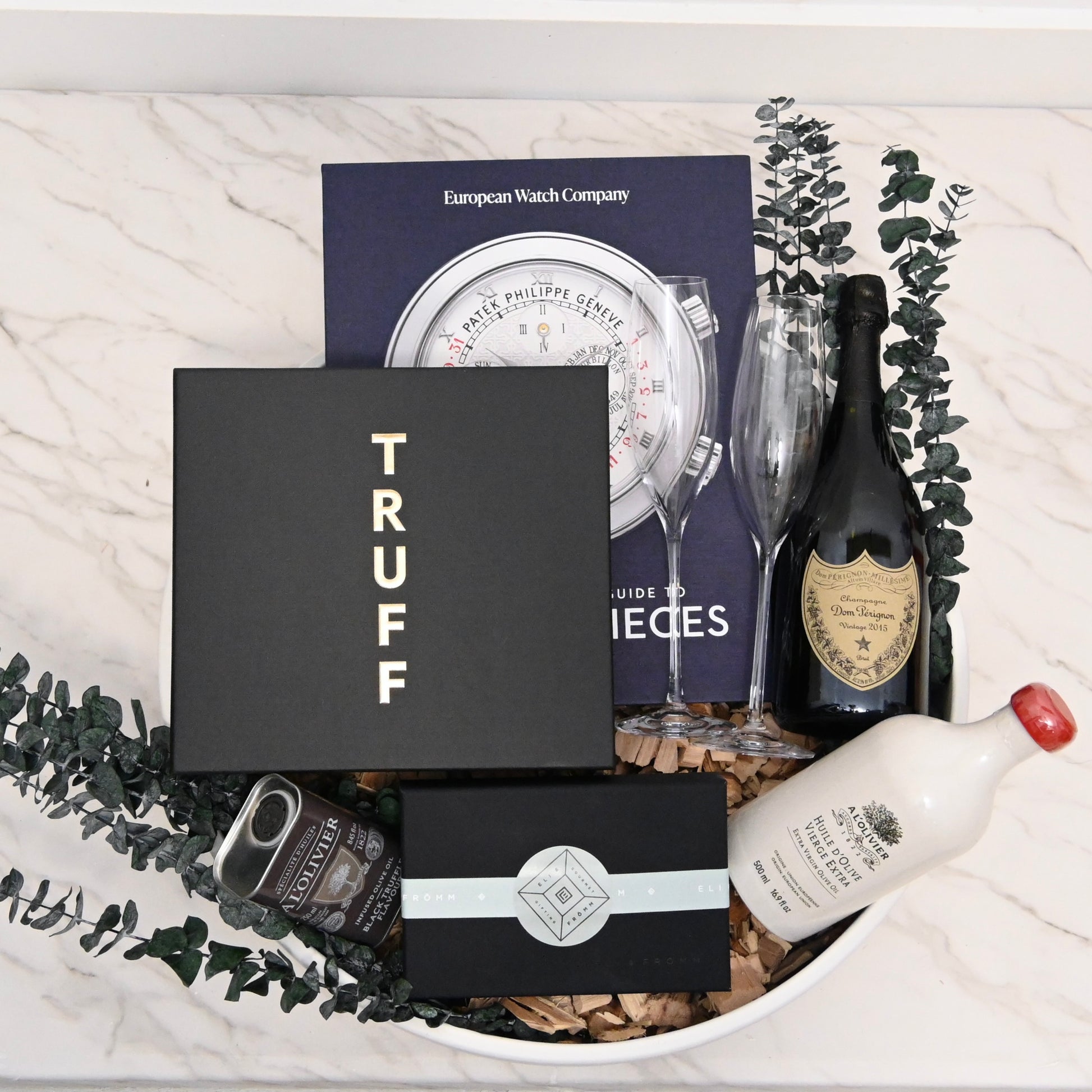 Designed with the modern gentleman in mind, The Dom Pérignon & Timepiece Gentleman’s Luxury Gift Bowl is a confident expression of refined taste, craftsmanship, and elevated celebration.