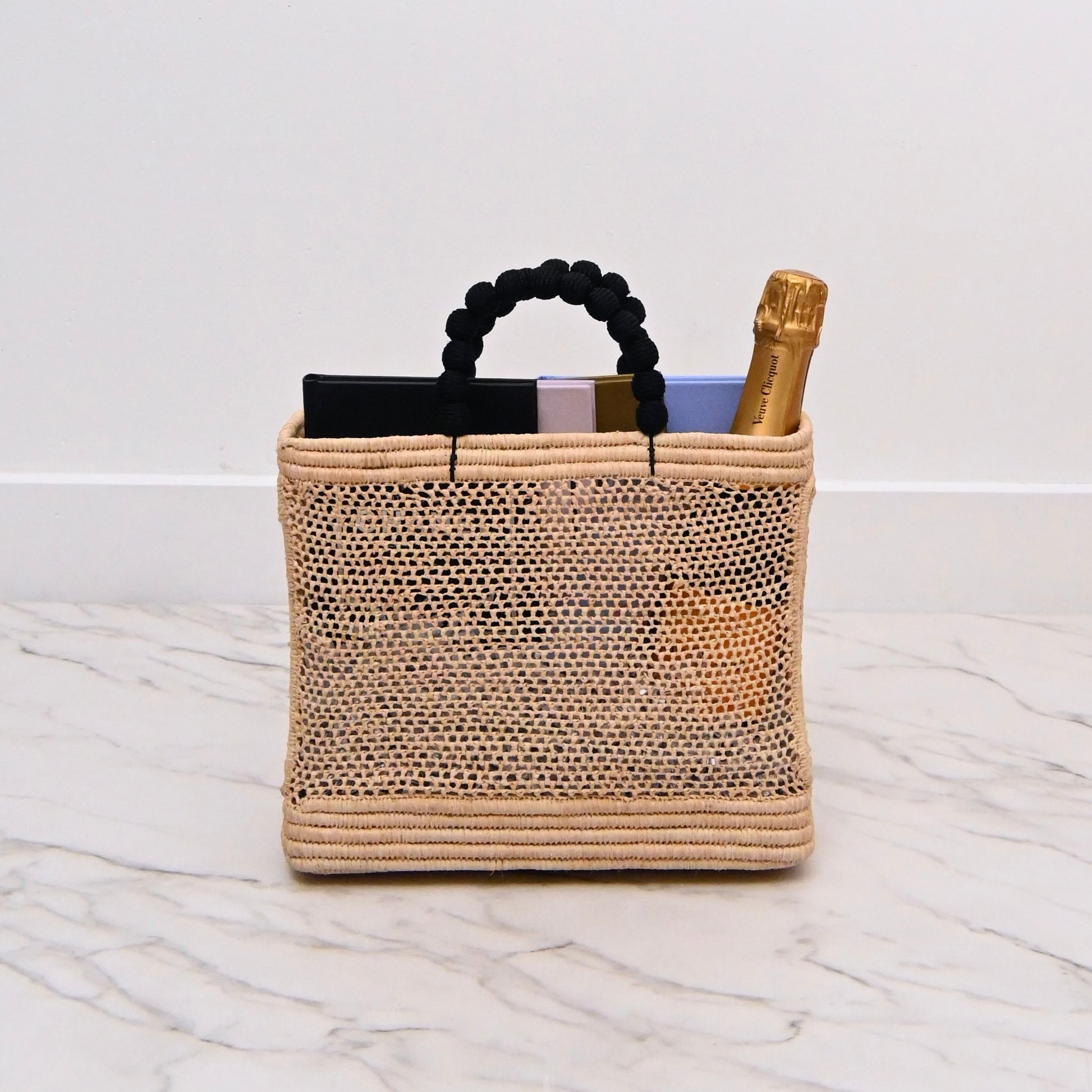 Presented in a beautifully woven straw tote with statement black handles, this elegant hamper blends luxury fashion inspiration with celebratory essentials. At its heart is a bottle of Veuve Clicquot Brut Champagne, renowned for its vibrant character and unmistakable sophistication—perfect for toasting life’s most stylish moments.